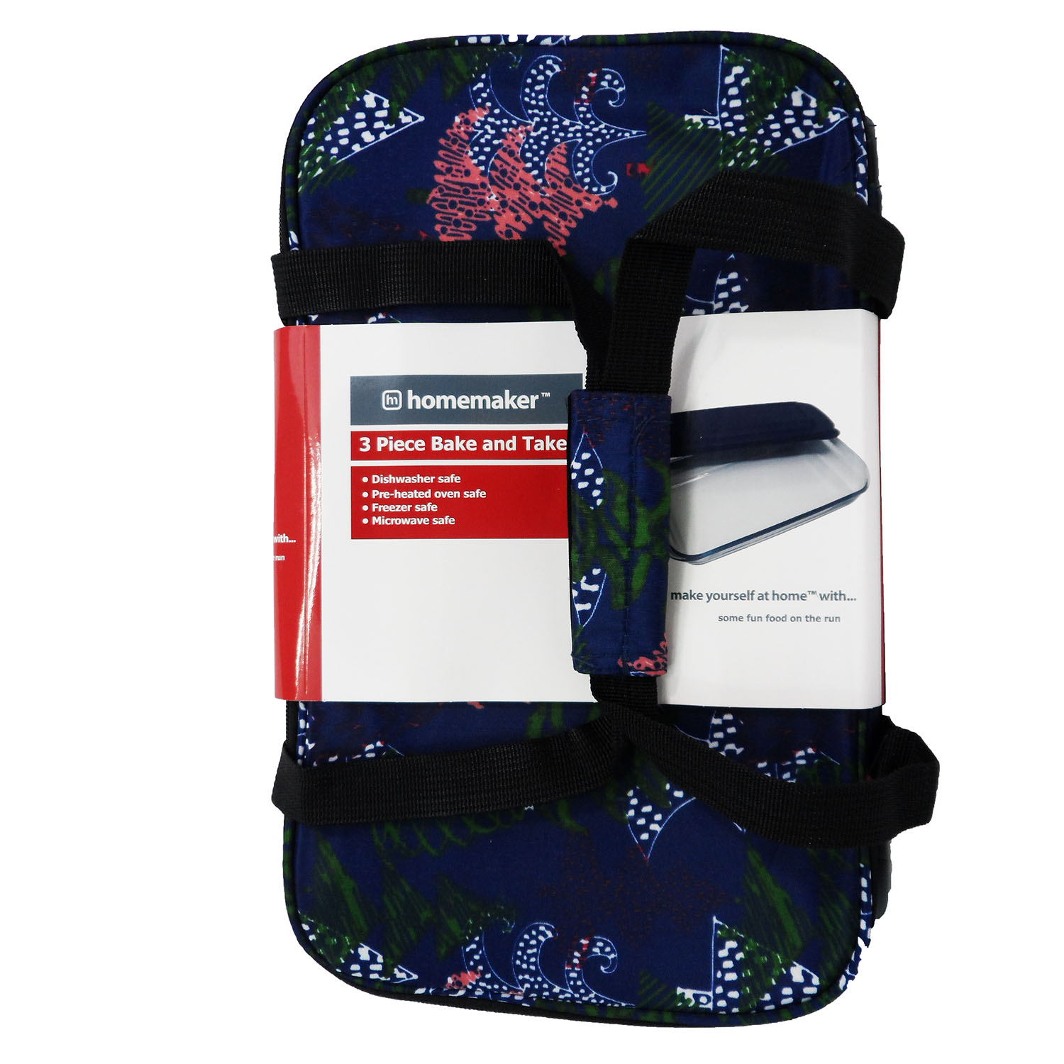 BAKE DISH AND TOTE 3PC BLUE HOLIDAY TREES